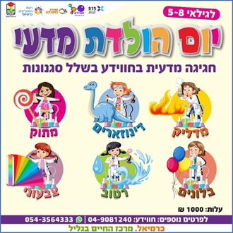 יום הולדת מדעי בחווידע כולל פעילות של מופע מדעי, ביקור בלונה פארק המדעי, וזמן לכיבוד. משך הפעילות שעתיים. נושא יום ההולדת נבחר בהתאם לגיל ולרצון הלקוח.